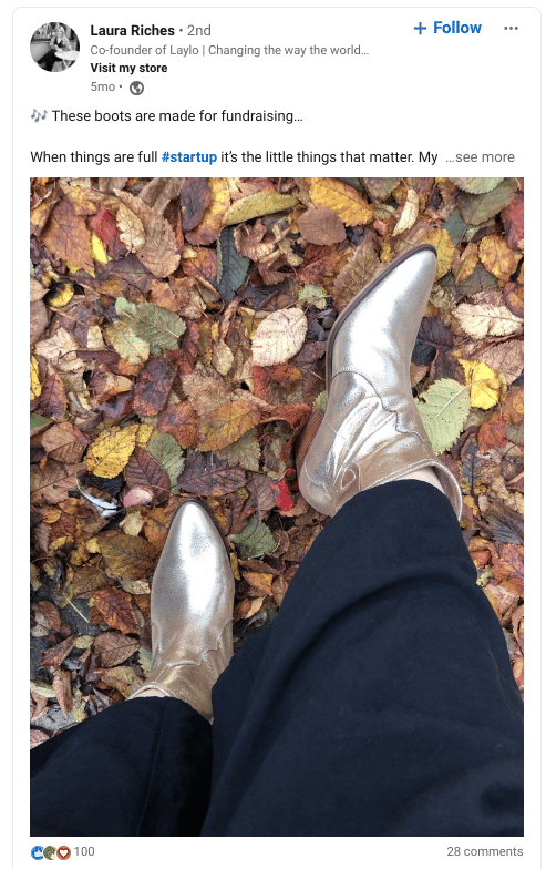 Here’s an example from Laura Riches, founder of the wine brand Laylo, doing just that on LinkedIn.