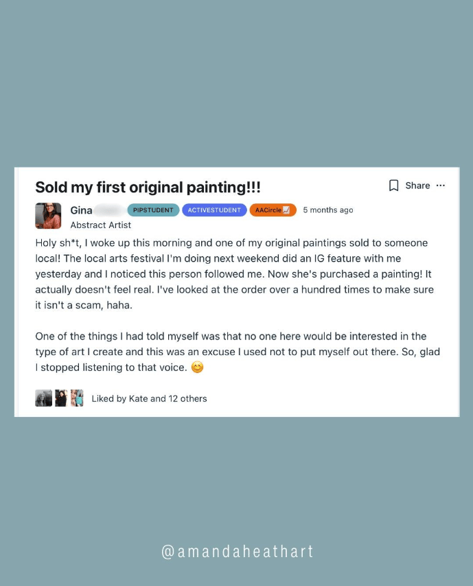 Here’s a great example from my client, artist and business mentor, Amanda Heath.